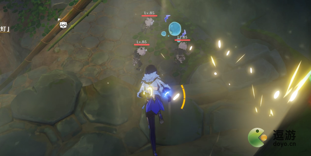 跟随『水形幻灵』继续深入,小水珠穿过铁门,我们从左侧斜柱翻进去