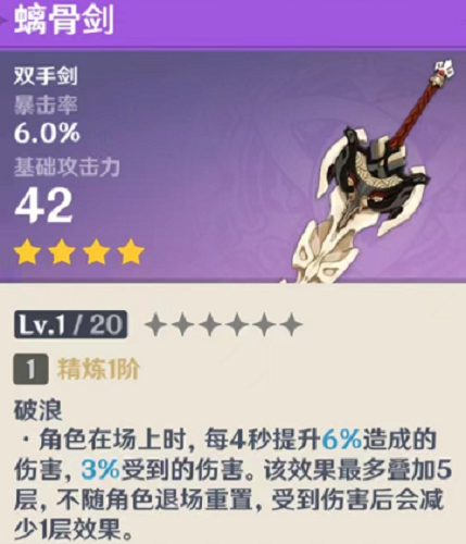 深渊开启挑战前也可以叠加,建议搭配盾辅食用。这把大剑也是无数人强推的,精5强度媲美大部分5星大剑,在这个大剑摆烂的环境里属实是一股清流了。